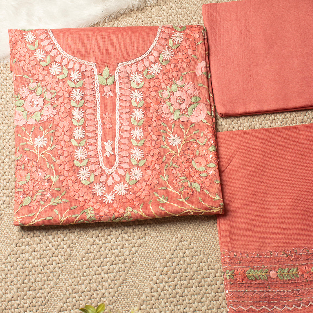 Floral motif muslin embroidered unstitched suit set