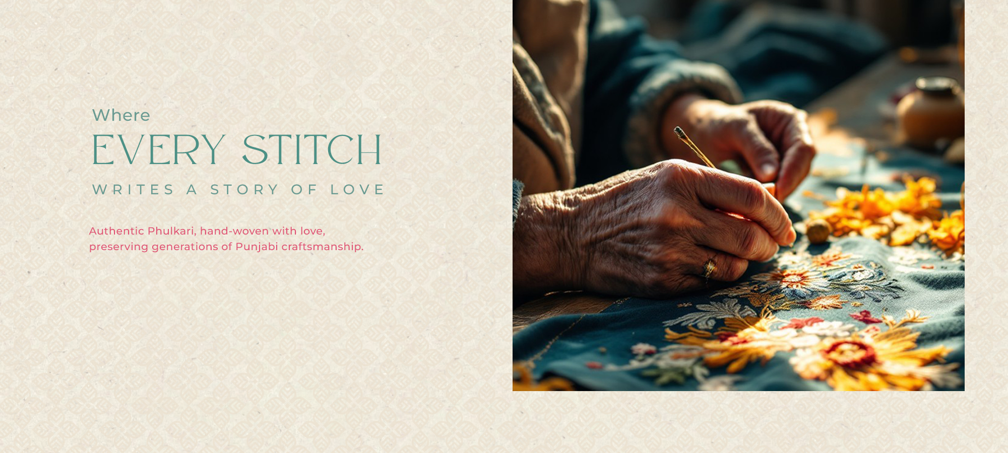 Threadtales honours the vibrant craft legacy of Punjab. Every piece is hand-wooven using traditional Phulkari embroidery - rich colours, intricate thread works, and a level of details that turn heritage into timeless, premium fashion