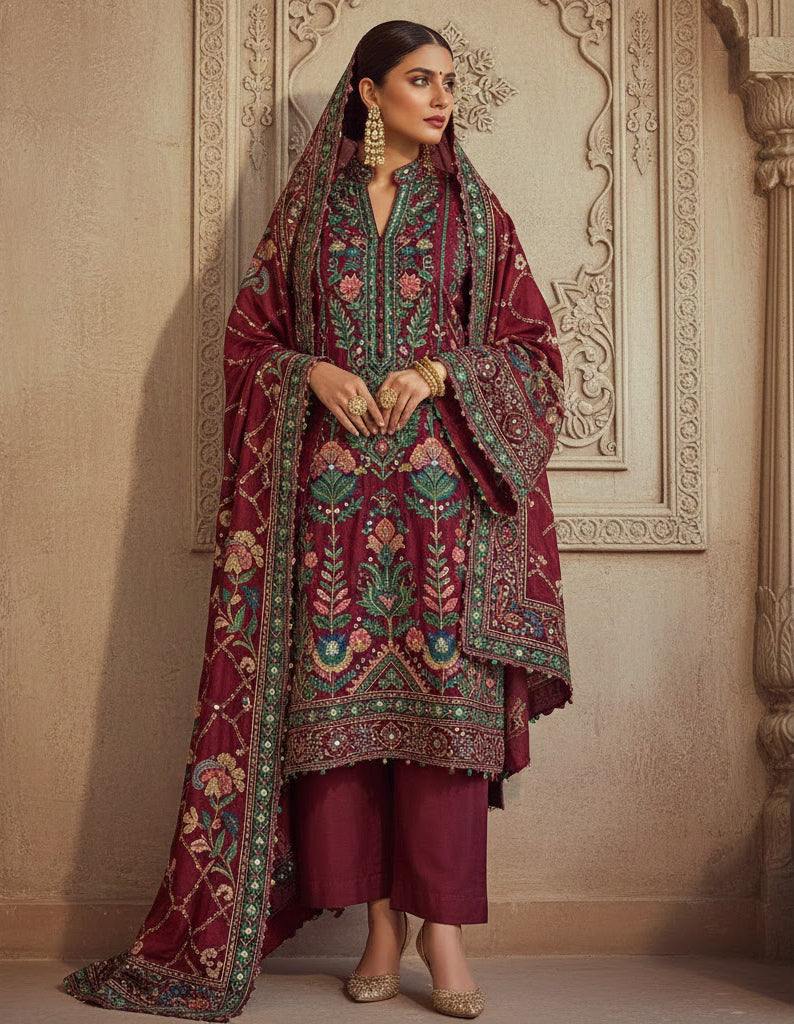 Do rang tashreeh embroidered unstitched suit set